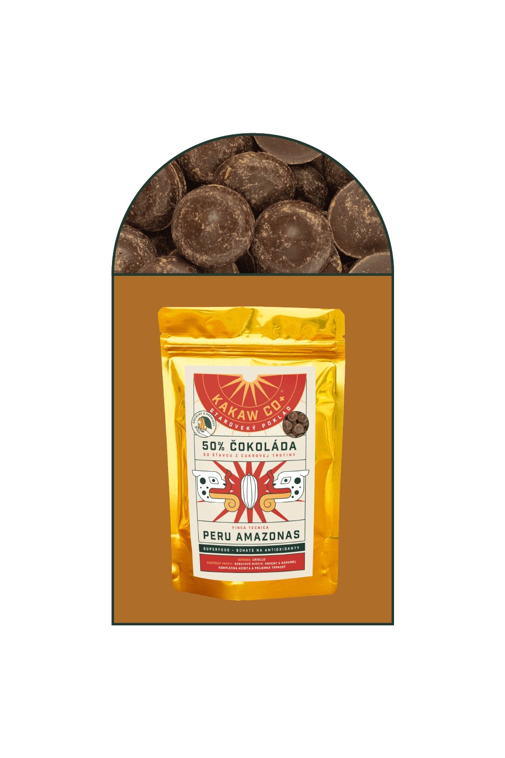 Hořká čokoláda z regionu Amazonas v Peru, kde stále umíme najít i původní odrůdu kakaa – criollo, vás dostane svou autentickou aromatickou chutí. Region Amazonas je známý svou biodiverzitou, která se projevuje také ve výrazném tropickém chuťovém profilu kakaa. Čokoláda ve tvaru peněz obsahuje 50 % čisté kakaové hmoty vyrobené z kakaových bobů v prémiové kvalitě 'fino de aroma' a 50 % panely (nerafinovaná šťáva z cukrové třtiny, plná vitamínů a minerálů) bez přidání cukru, konzervantů, tuku či adi. Jelikož není odtučněná ani alkalizovaná, přirozeně se v ní nachází 52 % kakaového másla, díky čemuž je nejen chutná, ale především zdravá a bohatá na minerály a vitamíny. Vhodná pro vegetariány a vegany, bez aditiv.
