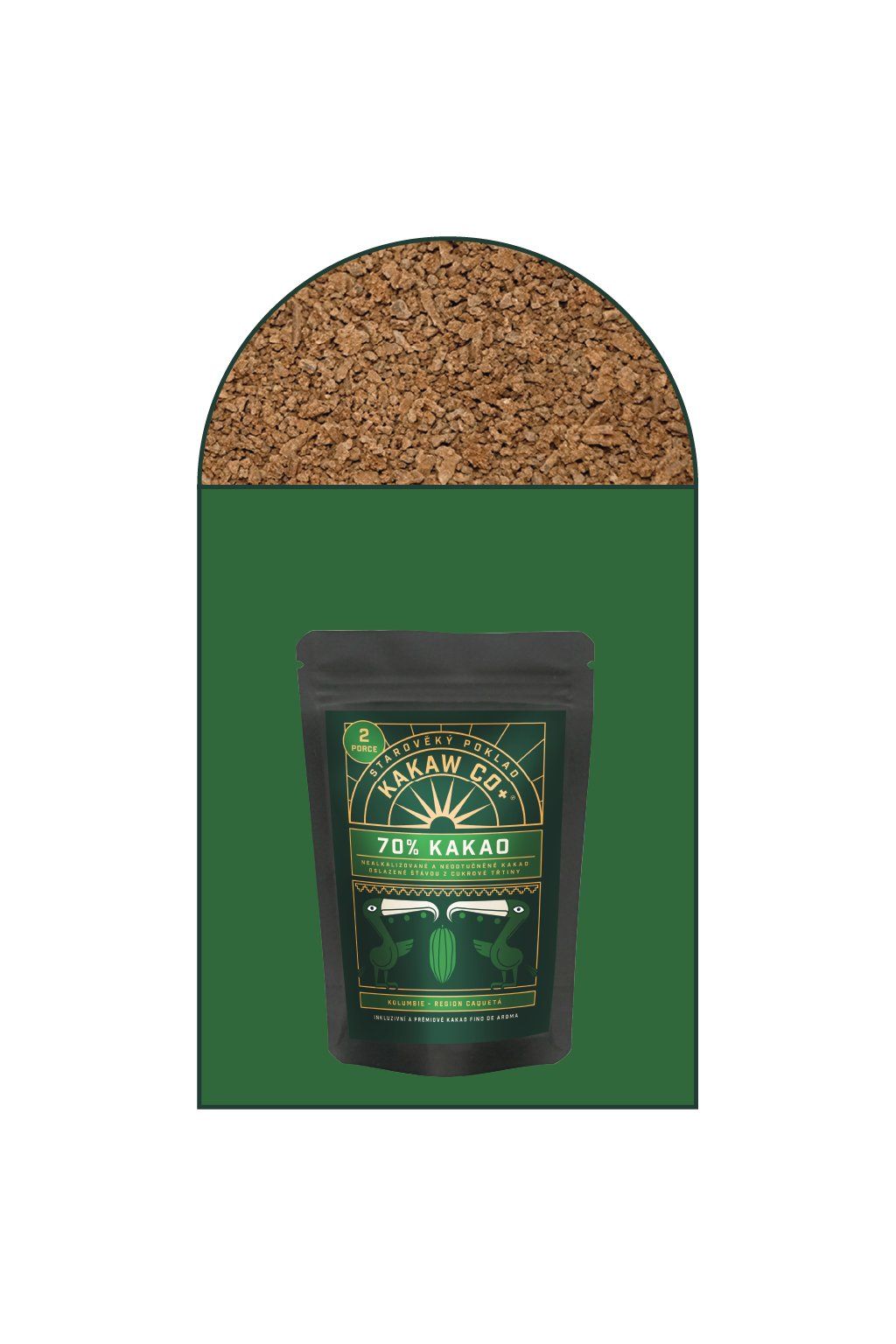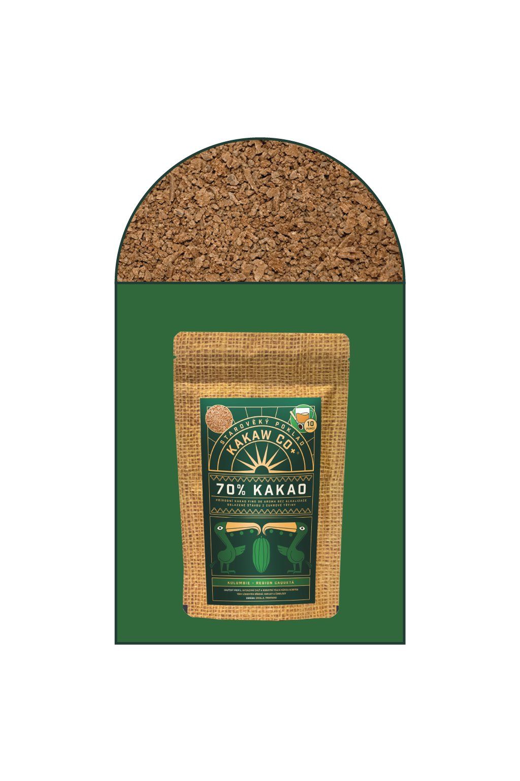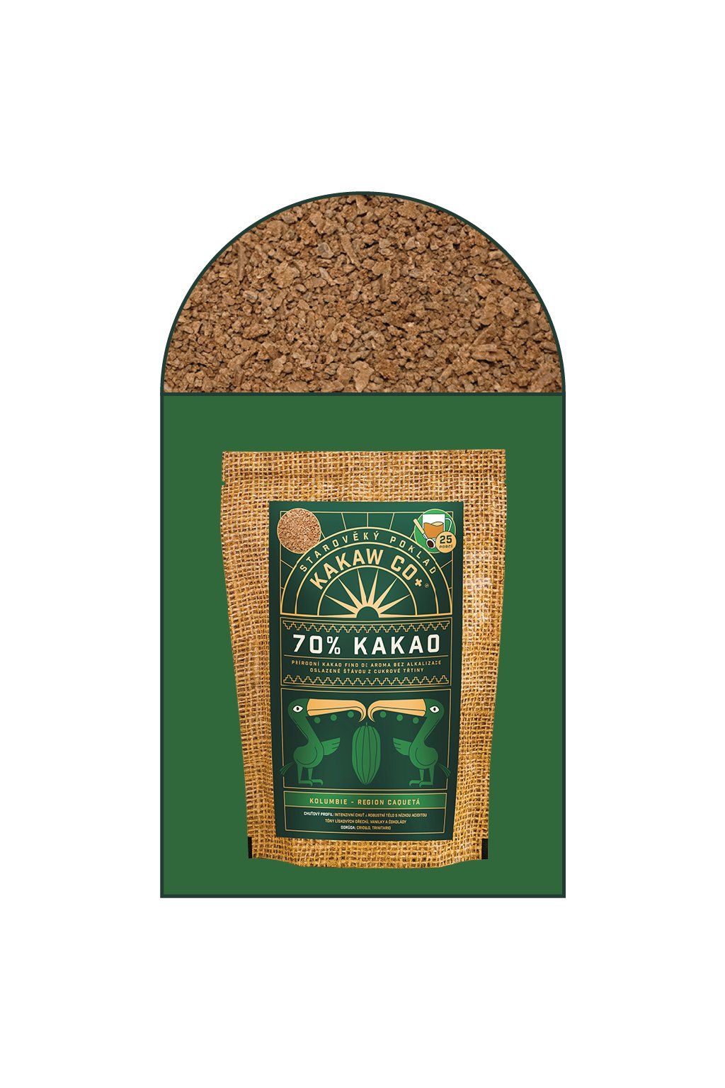 Toto 70% přírodní kakao je vyrobeno výhradně z čisté kakaové hmoty, získané z pečlivě vybraných kakaových bobů fino de aroma a panely – tradičního kolumbijského sladidla vyrobeného z jemně sušené šťávy z cukrové třtiny. Kakao je nealkalizované a plnotučné, zachovává si přirozený obsah kakaového másla a autentický chuťový profil bez chemického ošetření.