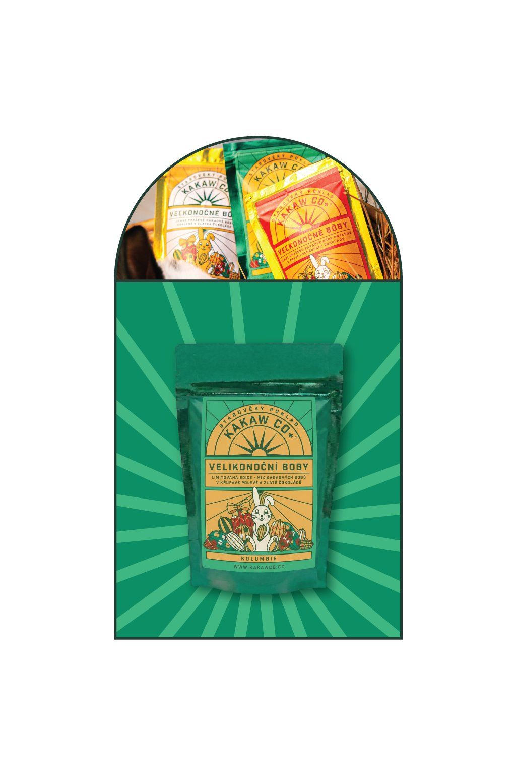 Velikonoční boby – Mix jsou sezónní edicí, která spojuje dva naše kakaové snacky do jednoho vyváženého chuťového zážitku. Základem jsou jemně pražené kakaové boby z Kolumbie, známé svou bohatou chutí a přirozeně vysokým obsahem minerálů, antioxidantů a theobrominu.